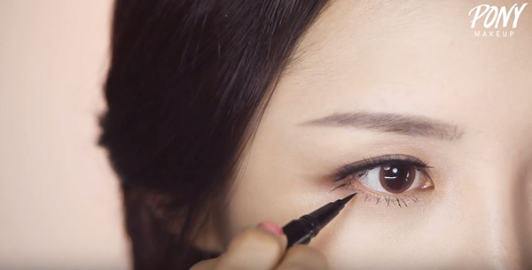 Để tạo cảm giác lông mi dài và dày hơn, bạn có thể thêm những sợi mi giả. Hãy dùng bút kẻ mắt, vẽ những đường thật mảnh giữa những sợi mi thật của bạn. Đây cũng là cách mà chuyên gia trang điểm nổi tiếng người Hàn Pony hay áp dụng đấy. Để tạo cảm giác tự nhiên mà không bị giả, bạn chỉ nên vẽ thêm ở phần đuôi mắt và mi dưới thôi nhé. Sau đó, hãy chuốt mascara như bình thường.